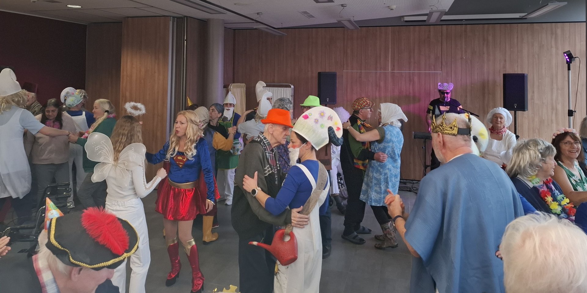 Eines der Highlights in unserem Veranstaltungskalender ist jedes Jahr definitiv das Faschingsfest am “Rosenmontag”. Normalerweise für alle unter einem Motto geführt, gibt es dieses Mal eine Neuerung: Es gibt kein Motto! Jeder Bereich war somit komplett frei in der Ideen- und Kostümfindung. So ergab sich eine kunterbunte Faschingsgesellschaft aus BewohnerInnen und Angehörigen, sowie haupt- und ehrenamtlichen MitarbeiterInnen, die bestens gelaunt den Nachmittag gemeinsam verbracht hat.