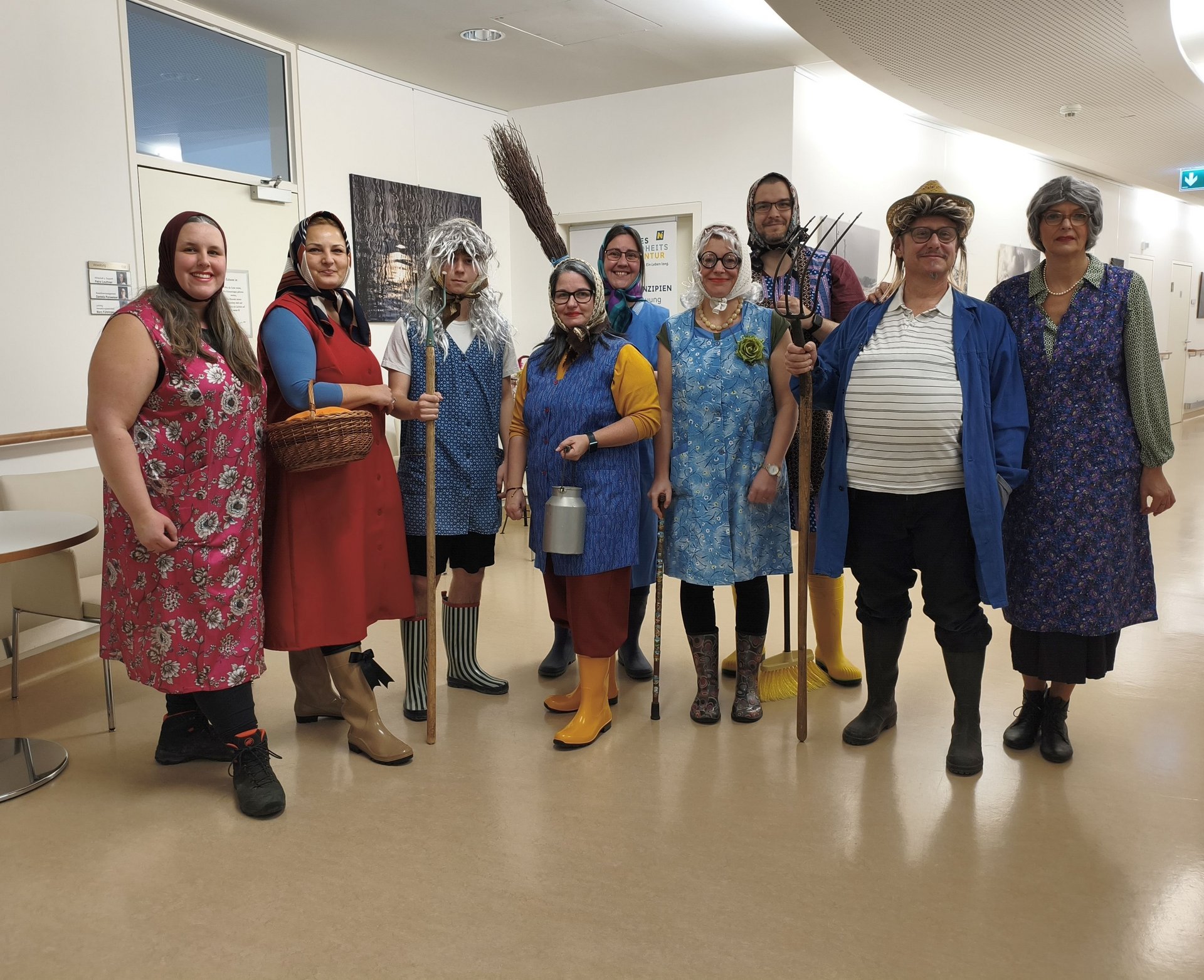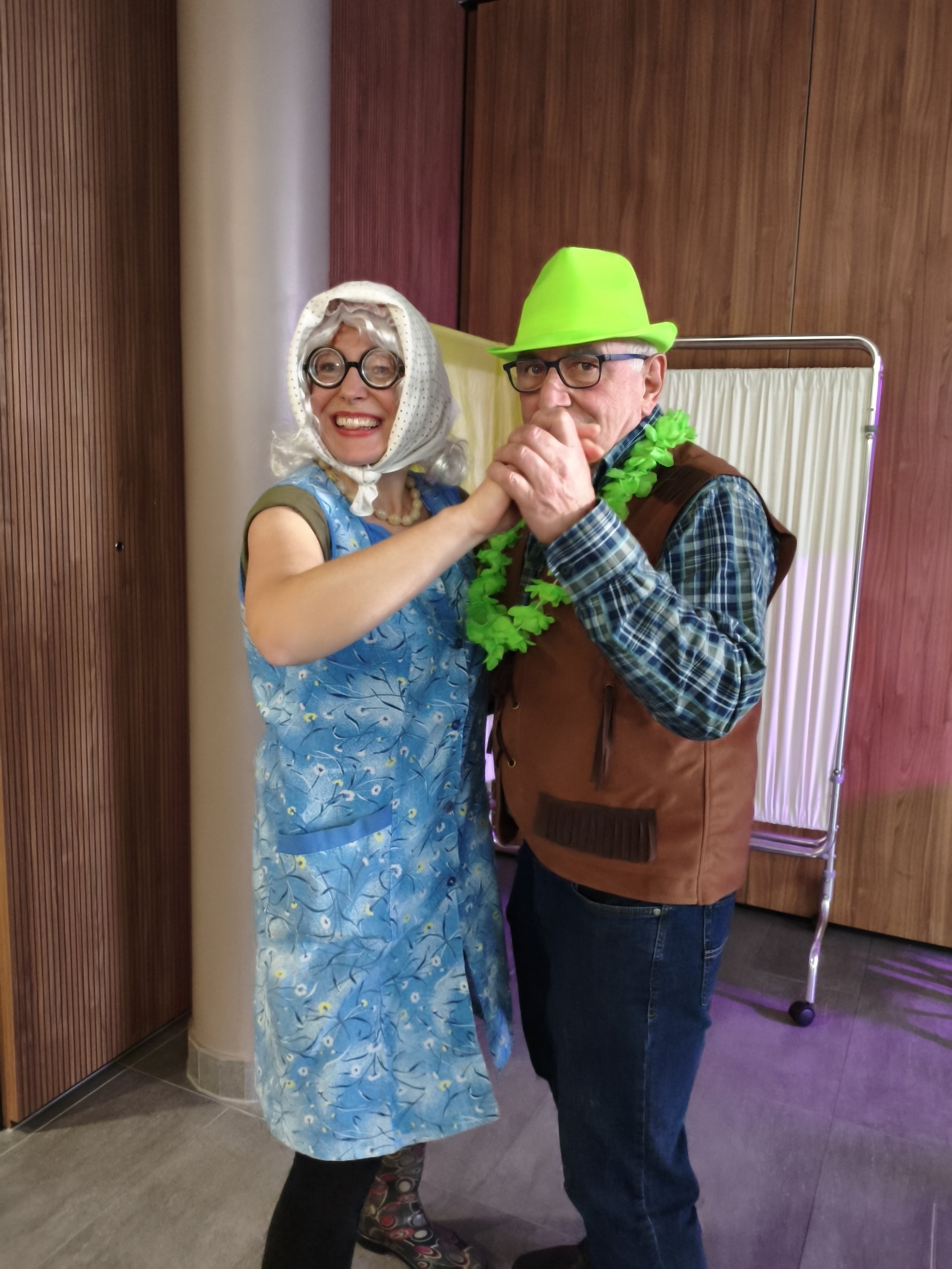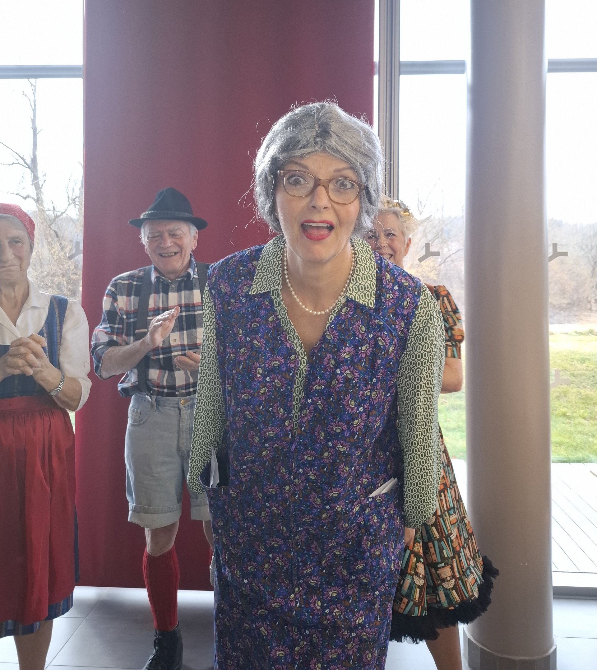 Unsere Managerin für Ehrenamt und Alltagsbegleitung Esther Ziegler war aufgrund starker Migräne leider nicht abkömmlich und hat als Ersatz für ihre Moderationstätigkeiten ihre alte Freundin, die “Luisl vom Berg”, engagiert. Diese kam gleich mit der ganzen Familie im Gepäck und begrüßte die Gäste mit den Worten: “Na servas! Wenn ma g'wusst hätten, wia vü scheene Leit do san, hätt' ma uns a bissl mehr hergerichtet!” und ein paar Mal konnte sie sich im Lauf der Veranstaltung dann nicht verkneifen: “Wenn die Zieglerin wüsst', wos sie do heit' versäumt…”.